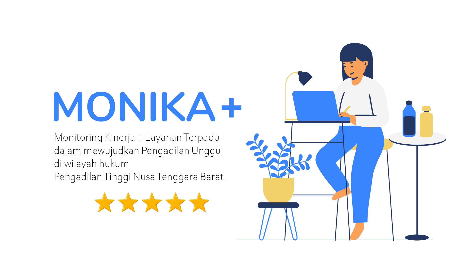 Monitoring Kinerja + Layanan Terpadu dalam mewujudkan Pengadilan Unggul di wilayah hukum Pengadilan Tinggi Nusa Tenggara Barat. Monika juga hadir memberikan kemudahan dan kecepatan dalam mengakses data perkara, anggaran, serta layanan-layanan pengadilan sewilayah Nusa Tenggara Barat dalam sebuah inovasi terintegrasi.